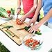 - KNIFE AND CUTLERY FRIENDLY: The gentle bamboo won’t dull your knife and cutlery, Please do not pass it into hot water or dishwasher, to avoid any damage for the board