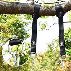 - TREE SWING & HAMMOCK HANGING KIT: Set of two 5 feet strap is made of the high strength terylene that prevents stretching, and withstand harsh winter and brutal summer without showing signs of wearing or tearing. While the heavy duty carabiner hook is made of industrial strength steel making it nearly indestructible,much more stable than S hook.