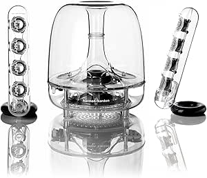 A 6-inch, 20-watt downward-firing powered subwoofer. Eight 1-inch full-range transducers. Plug-and-play compatibility with virtually any multimedia device. And stunning industrial design that perfectly matches the clarity of the sound. The Harman Kardon SoundSticks III desktop sound system brings a new level of excitement to music, games and movies with a minimum of wiring and looks spectacular doing it.