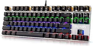 This item: Gaming Mechanical Keyboard Led Backlit - Hcman USB Wired Computer Gaming Keyboard Blue Switches with Cool 6 Colors Light for PC or Mac,87 Keys (Silver)