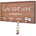 Homode Key Holder for Wall, Decorative Key Rack Organizer with 4 Hooks, Dog Leash Hanger Wall Mount, Wooden Signs Home Decor for Entryway, Mudroom, Hallway, Housewarming Gift, Rustic Brown