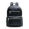 - FASHION MEETS FUNCTION: Our vegan leather backpack’s structured design and sturdy material make it both super functional and stylish, whether it’s being used for baby’s essentials or for mom and dad’s necessities. The bag features seven exterior zippered pockets and three interior pockets to keep you organized and uncluttered. The included changing pad features a zippered pocket to keep wipes and other diapering essentials handy.