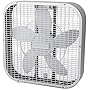 This fan does not have the power of a giant box fan (which you can buy here or at a department store for like $20). Simply speaking: Bigger blades move more air. And faster rotations move more air. So large blades on a giant motor are going to move air around ALOT. So much that it will blow papers off desks in other rooms. If that's what you want, buy one of those.
