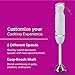 SMOOTH BLENDING: Rubberized handle with 2-speed button control makes it easy to puree, dice, mix, crush, and more! Powerful stainless-steel blades crush and blend with ease.