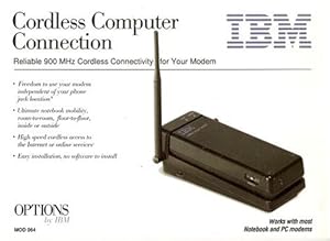 It's a 900MHz cordless phone without the phone. Use it to add wireless to any modem. The IBM Cordless Computer Connection provides a high speed wireless connection to your phone line. Utilizing 900Mhz radio frequency technology, it gives the notebook user ultimate mobility by enabling use of a modem connection to the Internet or other online service without being tethered by the telepohone cable and telephone jack. Surf the net from any room or from outside on your deck.