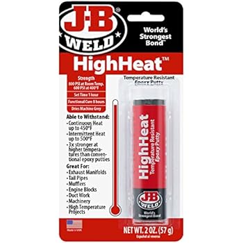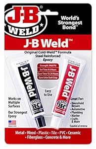 J-B Weld is The Original Cold Weld two-part epoxy system that provides strong, lasting repairs to metal and multiple surfaces. Mixed at a ratio of 1:1, it forms a permanent bond and can be shaped, tapped, filed, sanded and drilled after curing. At room temperature, J-B Weld sets in 4-6 hours to a dark grey color. A full cure is reached in 15-24 hours. J-B Weld has a tensile strength of 3960 PSI and sets to a hard bond overnight. It can withstand temperatures up to 550ºF when fully cured.