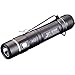 3.75" overall. Clip. Impact resistant. Water resistant. Strobe. Lanyard. Rechargeable. LED. Three modes: High-14500 (650 lumens, 0.5h), High-AA (190 lumens, 1.1h), Mid (46 lumens, 9h), Low (4 lumens, 100h). Includes micro USB cord. 129 meter beam distance. Requires AA battery (not included) or 14500 battery (not included). Aluminum construction. Color: Black. Boxed.