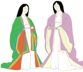 RC410 - Heian Japanese Woman's Informal Outfit (Hitoe, Uchigi and Uwagi) Pattern. 30 1/2 to 48" bust with instructions to enlarge. Hitoe, Uchigi, and Uwagi (underrobe, layers, and top robe) as worn informally and semiformally by ladies in the Heian Period in Japan 894-1172 ad. patterns for hitoe, uchigi and uwagi, the underrobe, layers and top robe worn by women in informal and semi-formal ocassions in Japan's Heian Period (894-1172). One unlined uchigi can be worn between the hitoe and uwagi casually or five or more colour-matched, lined uchigi can be worn as the semi-formal outfit.