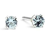 3mm Tiny Aqua Baby Blue Aquamarine Gemstone Stud Earrings in Sterling Silver - March Birthstone