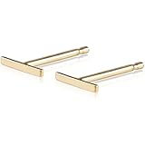 Balluccitoosi Line Stud Earrings - 14k Gold Bar Studs Earring with Push Back - Small Unique Jewelry for Girls and Womens - 6mm Tiny Stick and Cute for Everyday