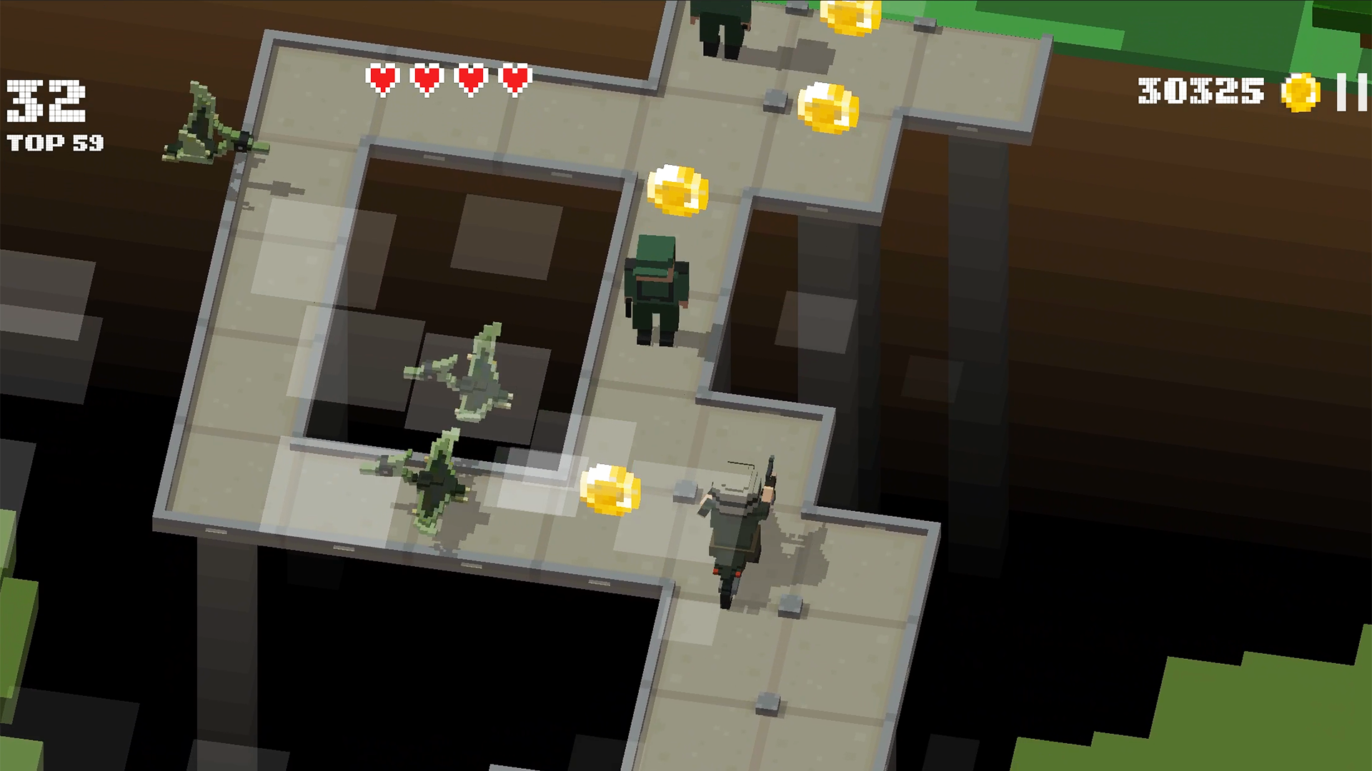 Unlock and try all of the characters and their weapons! Reach the highest score! Make it out alive!