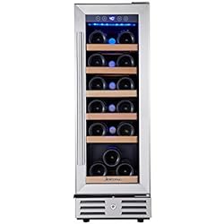 Kalamera Mini Fridge 18 Bottle - 12 inch Wine Cooler Refrigerator, Built-in or Freestanding, with Stainless Steel & Double-Layer Tempered Glass Door, and Temperature Memory Function Wine Fridge