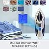 - ONE-TOUCH DIGITAL CONTROL WITH 9 FABRIC PRESETS - The Kenmore Steam Iron is programmed with ideal temperature and steam settings for various fabrics, including Acrylic, Nylon, Silk, Polyester, Poly Blends, Wool, Cotton, Denim, and Linen. The multicolor LED display shows the mode and heating status, making it easy to select the right setting for your fabric. This one-touch digital control simplifies the ironing process, ensuring optimal care for different materials and enhancing user convenience.