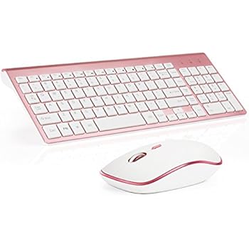 Keyboard & Mouse Combos, URCO Ergonomic Wireless 2.4G Ultra Slim Keyboard and Portable Mouse for Gaming and Working (Rose Gold)