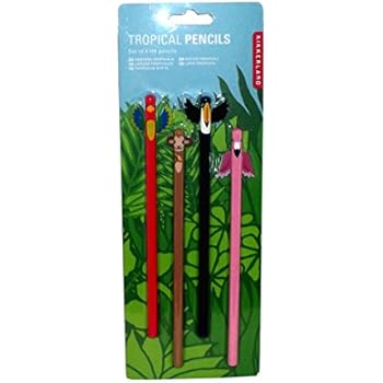 Kikkerland Tropical Animal Novelty Pencil Set, 4 pieces