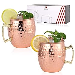 This item K Kitcherish Moscow Mule Mugs Set of 2-[Gift Set]18 oz, Hammered Copper Mugs | Stainless Steel Lining, Copper Plating Cup with Gold Brass Handles for Making Cool Drinks, 3.4'' (Diameter) x 4 ''(Tall) | Benicci Moscow Mule Copper Mugs - Set of 2 - 100% HANDCRAFTED - Food Safe Pure Solid Copper Mugs - 16 oz Gift Set with BONUS - Premium Quality Cocktail Copper Straws, Straw Cleaning Brush and Jigger! | PG Moscow Mule Mugs - Large Size 19 ounces - Set of 2 Hammered Cups - Stainless Steel Lining - Pure Copper Plating - Gold Brass Handle - 3.7 inches Diameter x 4 inches Tall | V'SAINT Moscow Mule Mugs Set of 2 - Hammered Copper Cups - Premium Quality 100% Handcrafted (16 oz) - Mule mugs with Brass Handles - Cocktail Moscow Mule (Gift Set) with 2 Straws | Arora Moscow Mule Mug, Set of 2 Copper Hammered, Durable for Home Dining, Max Capacity 20oz, 3.7" D x 3.9" H | |