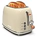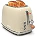 Toaster 2 slice, KitchMix Retro Stainless Steel Toaster with 6 Settings, 1.5 In Extra Wide Slots, Bagel/Defrost/Cancel Function, Removable Crumb Tray (Cream)