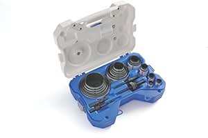 The LENOX Tools Hole Saw Kit with T3 Kit, 20 piece, features hole saws with enhanced tooth geometry to cut 50% faster than previous LENOX hole saws. Twice as durable as our previous generation when cutting through metal, these bi-metal hole saws feature thicker walls to minimize tooth loss and improve durability. Staircase SPEED SLOTS have wide slots placed low on each hole saw and multiple leverage points to make it easy to work plugs out with a screwdriver. This design effectively removes sawdust and chips and helps prevent plugs from becoming stuck in each saw. 10% taller than previous models, they deliver cleaner cuts through two-by lumber.