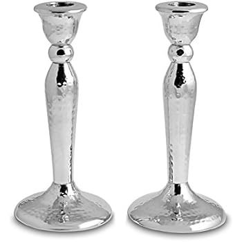 Zion Judaica Classic Hammered Aluminum Candlestick Set