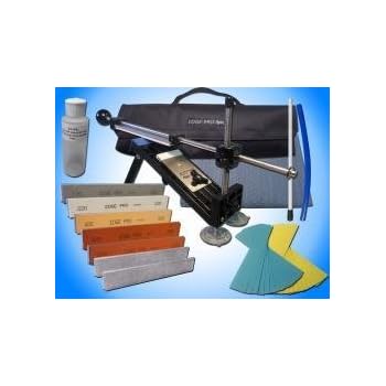 • Kit includes knife clamp, four sharpening hones (coarse, medium, fine, and serrated), guide rods, oil, storage/carrying case, and instructions