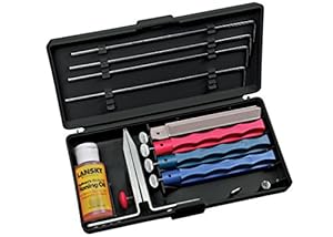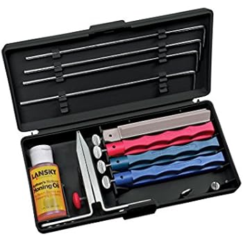 Ideal for keeping blades of all kinds sharp, this complete sharpening system from Lansky includes all of the tools you need for regular sharpening maintenance of your straight edge, serrated, and scalloped edge blades. The set includes four hones: medium serrated edge, coarse, medium, and fine; a multi-angle knife clamp; specially formulated honing oil; a molded storage/carrying case; and complete instructions. Use this kit on your kitchen, utility, hunting, or fishing knives to maintain their sharp edges and maximum cutting ability.
