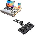 - ✅ COMFORTABLE AND SECURE DESIGN - The wrist pad provides a comfortable position to place your wrist while also preventing the computer from slipping off. The mouse pad enhances your work efficiency. The dual bolster cushion base conforms to your lap, providing more comfort and keeps the laptop at a more comfortable angle