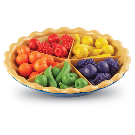The Super Sorting Pie teaches early number skills and attributes, including colors and fruit shapes. Provides supportive visual cues, thanks to the sorting cards that slip into the bottom of the pan. Top crust becomes a bowl to conveniently hold counters. Reinforces fine motor skills when children use jumbo tweezers, featuring depressions that guide little hands into the proper pincer grip. Children are sure to sort, count and relish large servings of fruity pie fun!