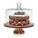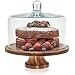 Libbey Acaciawood Flat Round Wood Server Cake Stand with Glass Dome