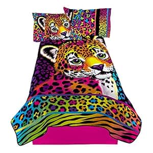 Kids will love this high colored 62x90 inches Lisa Frank wild about hunter Blanket. It features hunter, the cheetah. Made of 100percent soft, cuddly polyester. Machine wash cold with like colors, use-non-chlorine bleach if needed. Tumble dry low, remove promptly. Do not iron.