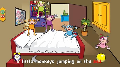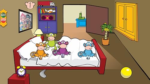 - New interactive features that your child will love, including toys that react to touch, a peekaboo dog, and a stop-n-go button that starts and stops the monkeys jumping to allow children to explore the monkeys' bedroom.