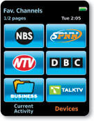 The Harmony One can be programmed to display on it's touch screen a pictorial list of favorite channels. 6 channels per screen, multiple screens. That makes it easy for the wife to find her favorite channels, because when she chooses the "Watch Live TV" activity, all her favorite channels are displayed and are just a finger touch away. No need for her to memorize 4 digit channel numbers for each or to scroll through all channels to find the ones she wants. However, the channel icons are not provided by Logitech. You will need to Google for "Harmony One icons" in order to find the user generated websites that provide the icons, such as iconharmonyDOTcom.