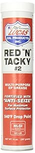 Lucas Red 'N' Tacky Grease is a smooth, tacky, red lithium complex grease fortified with rust and oxidation inhibitors. It has good water resistance and washout properties. It has excellent mechanical stability and storage life. It is able to withstand heavy loads for extended periods of time. It can be used in many agricultural, automotive and industrial applications. Lucas Red 'N' Tacky Grease is fortified with a high degree of extreme pressure additives that give it a true timken load much higher than other greases of this type. It's especially good for sliding surfaces and open gears.
