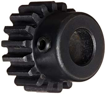 The Martin high carbon steel spur gear with 14.5-degree pressure angle (PA) and a diametral pitch (DP) of 20 transmits torque between parallel shafts to provide rotational power to another part of a motorized system. It has a 14.5-degree pressure angle for a higher contact ratio between gears than larger pressure angles, resulting in quieter operation, and a 20-diametral pitch for applications requiring a balance between transferring torque and controlling changes in speed and direction of rotation with precision. This spur gear, which can mesh only with spur gears that have the same pressure angle and diametral pitch, is made of high carbon steel for tensile strength and hardness. This Martin spur gear is suitable for use in a variety of commercial and industrial applications, such as construction equipment, aeronautics, conveyors, and manufacturing equipment, among others.
