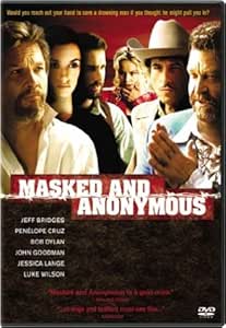 Masked & Anonymous on DVD comes with a commentary track from director Larry Charles, who is good on the details of the shooting schedule, but vague about the movie's aspirations. There are some deleted scenes (none of which shed any more light on the plot), another Dylan performance, and a 20-minute making-of featurette, with the many supporting stars waxing lyrical about the freewheeling shooting style and semi-theatrical staging. The anamorphic widescreen picture is unexceptional, as is the Dolby 5.1 soundtrack, which naturally enough works best with the music. --Mark Walker