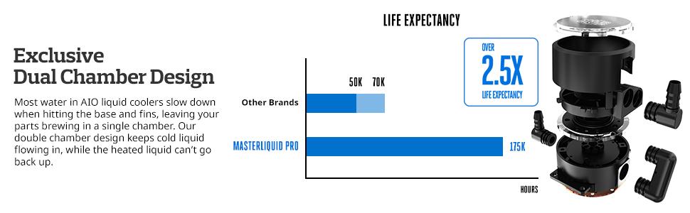 • MasterLiquid Pro 240 All-In-One (AIO) Liquid Cooler with FlowOp Technology, Dual Chamber Design and MasterFan Pro Radiator Fans