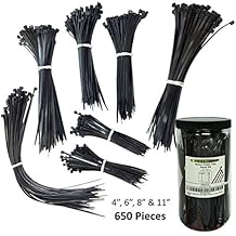 Nylon Cable Tie Kit - 650 Pieces - Assorted Lengths 4", 6", 8", 11" - Black