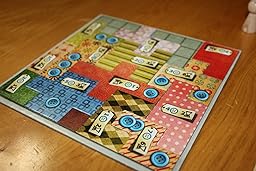 You have your game board in the middle of the table with Tetris styled quilt pieces around it in a circle. You collect those quilt pieces to build your quilt and to earn buttons (money). Whom ever collects the most buttons at the end wins!