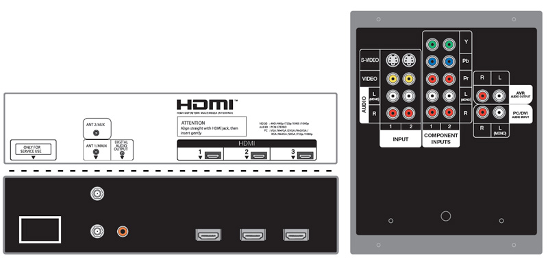 You don't need to worry about running out of connections with the LT-52144. It has a total of three HDMI 1.3 inputs with Simplay HD certification, so you can connect your Blu-Ray player, HD DVD player, and still have an input left over. It also has three component video inputs (two rear, one side), a side USB connection so you can display up to five megapixel photographs on the television, and two rear A/V inputs with S-Video. It has a Dolby Digital/PCM output and an analog stereo output. Mitsuibishi's NetCommand allows the included partially-illuminated remote to control an entire home theater system.