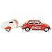 First it was the VW Samba with the famous teardrop trailer and now here it is, the VW Beetle with the famous teardrop trailer! This Coca-Cola red VW Beetle is dressed with bold but simple authentic Coca-Cola graphics on the doors and the well-known Coca-Cola disc on the roof. The VW Beetles were used as promotional tools for Coca-Cola as they were known to bring smiles to the faces of everyone who saw them. This model includes a metal teardrop trailer that has a hatch that opens and closes and has the white Coca-Cola disc graphic on the hatch. This model comes with a custom acrylic display case.