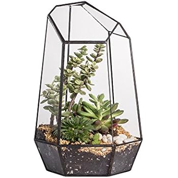 This item: NCYP Modern Tabletop Black Glass Geometric Terrarium Container Window Sill Decor Flower Pot Balcony Planter Diy Display Box for Succulent Fern Moss Air Plants Miniature Fairy Garden Gift (No Plants)