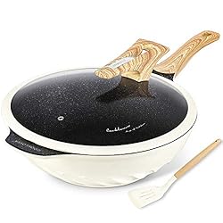 - ✅Your purchase includes one COOKLOVER 12.6-inch wok& lid with 1pc of gift silicone spatula, 6.24qts /5.9L in capacity and 5.6lb in weight.