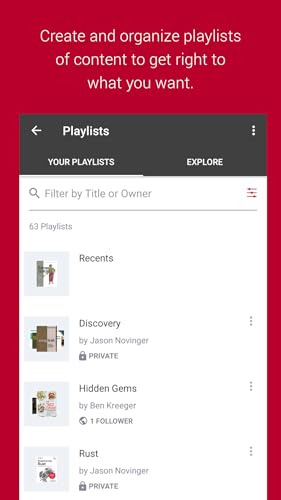 Discover and organize with Playlists: Search for the exact content you want to read, watch, or listen to—then add it to a playlist and revisit it any time.