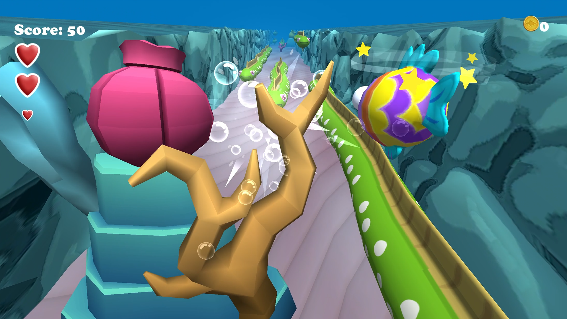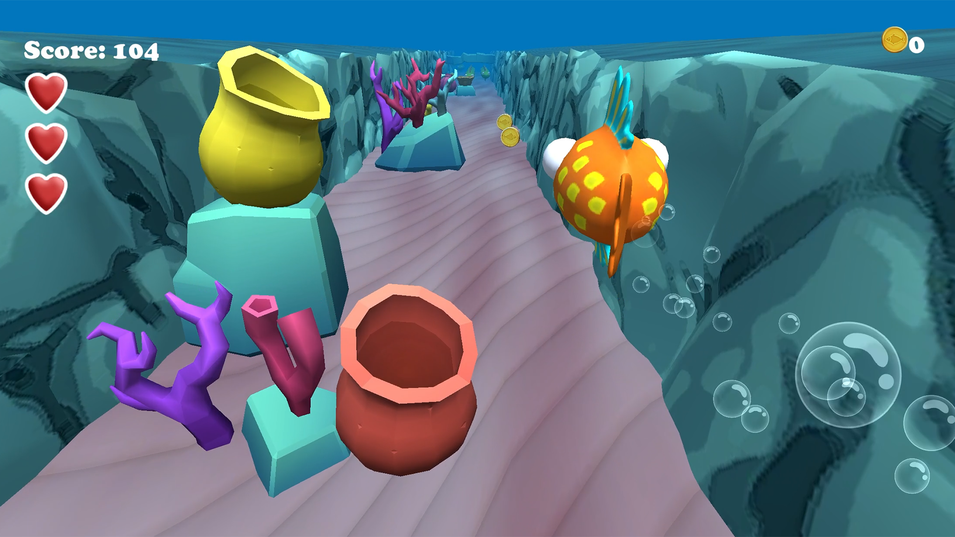 Be the fastest swimming fishy around in this endless runner! Dodge to avoid the obstacles and and get as far as you can. Chase the new high score!