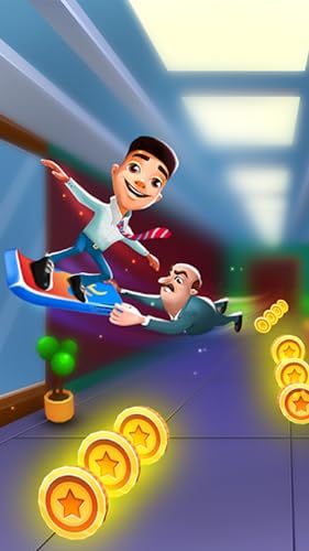 Don't forget to collect coins while you are being chased as they will help you to get fun boosters such as Hoverboard, Paper Roll, Jetpack, and much more!