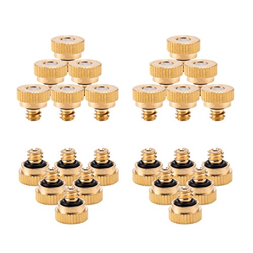 Brass Misting Nozzles For Outdoor Cooling System 22 pcs ,0.012” Orifice (0.3 mm) 10/24 UNC By Aootech