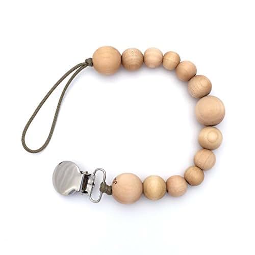 | Production Method | Our pacifier clips are made with organic wood beads. There is no lacquer or sealant on the wood, it is completely free of toxins. We condition the wood with our own blend of beeswax and coconut oil, both organic. The clip tip is lead free and has plastic teeth to protect clothing. The beads are strung together with a strong cord. This product has been tested and certified by a third party laboratory. It meets CPSA safety requirements. |