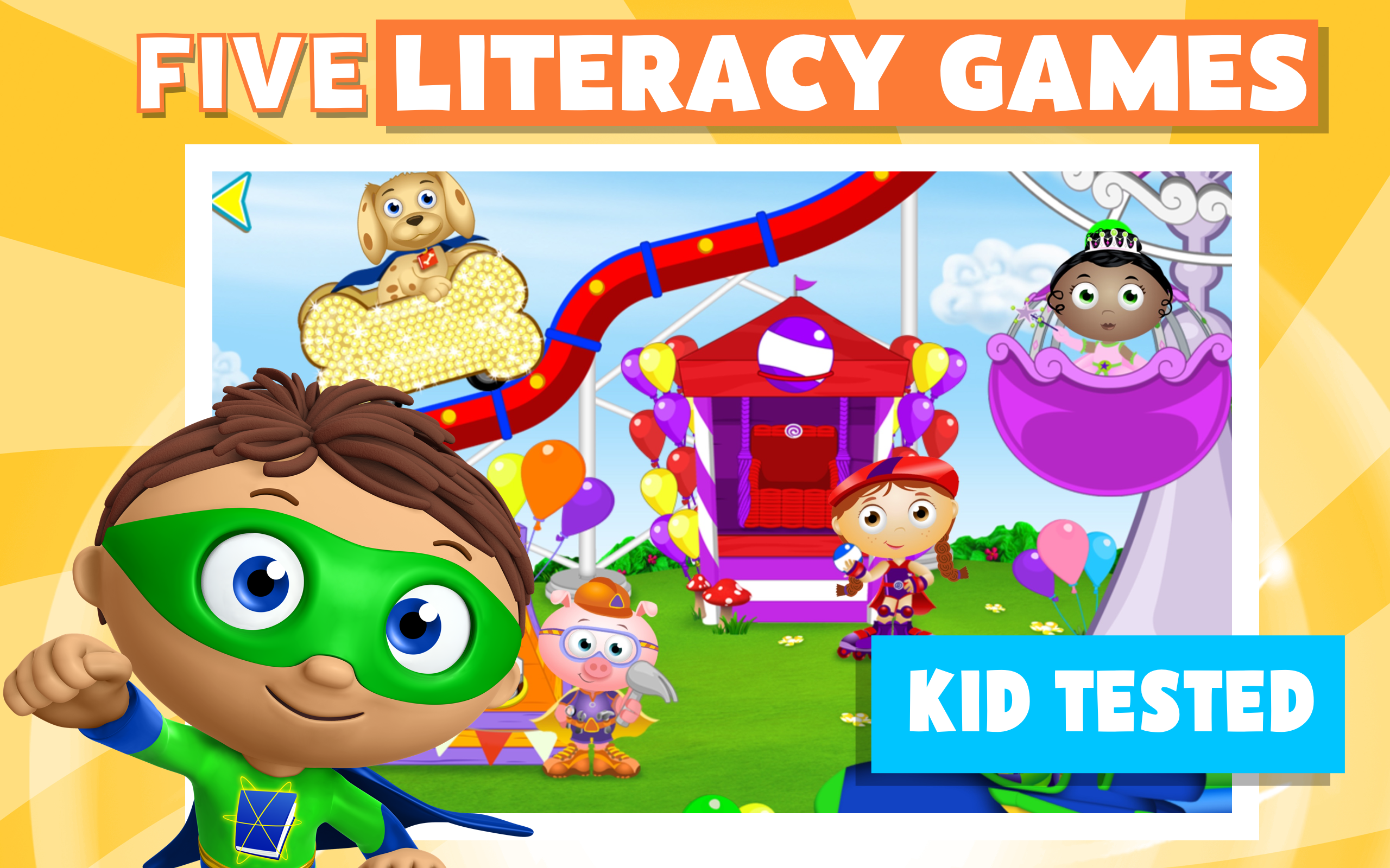 In this classic carnival-themed app from the hit PBS KIDS preschool series SUPER WHY, kids ages 4-6 will learn reading, word-building, and phonics skills as they play along with the Super Readers.