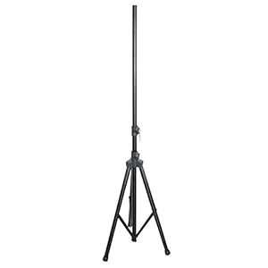 The PSTND25 is a 6 foot tripod speaker stand. The black anodized aluminum stand with metal lock keeps your speaker secure - perfect in the studio or on stage. Max load capacity 110 lbs. Set Up Height From 3.28 To 6 Feet Black Anodized Aluminum Stand with Metal Lock - Safety Pin for Maximum Strength and Security Reversible Tube Provides Industry Standard Diameters Tube Diameter: 35mm/38mm (1.375/1.5 Inches) Loading Capacity: 110 lbs. Constructed with Strong, Lightweight Tubing