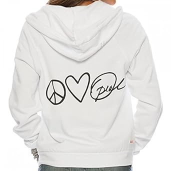 The Peace Love Oprah zip hoodie is now in fleece! Our fleece zip-up sweatshirt features a natural fit, matching zipper, bound cuff and hem, front-facing kangaroo pockets and a convenient, adjustable hood with coordinating drawstrings. Consider ordering a size down if you prefer a closer fit. At front, a quote reminds us to always "Look ahead in a new direction" and on the back, an oversized "Peace Love Oprah" design is printed centered and an inspirational Love Quote on the hood. MATERIAL: 60% Cotton, 40% Polyester CARE INSTRUCTIONS: Machine wash cold with like colors. Wash inside out. Only non-chlorine bleach when needed. Tumble dry low. Remove promptly and hang. Medium iron if needed. Do not iron on print / motif.