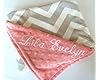 Front print is a Gray and White Chevron print minky. Blanket is backed with a dimple dot minky color of your choice. Color options can be seen in the last picture on this listing. The Dimple dot color pictured is coral. If no Color is chosen the color pictured will be used. Blanket is embroidered with baby's name. Choose your size and name. Please double check the size to confirm you are getting the size you want. Machine wash cold, tumble dry low. No fabric softeners and do not iron minky. Please Note: The $20 Lovey (15x18") size blanket is for baby to haul around or cuddle with before they are big enough to sleep with an actual blanket. PLEASE DO NOT ORDER THIS UNLESS YOU ARE LOOKING FOR A Lovey! You cannot wrap a baby in a blanket this size, it is a bit larger than a burp cloth and is meant to comfort and play with not cover. All the other size options are for a blanket size.